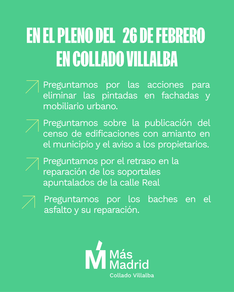 Desde Más Madrid estamos alarmados y preocupados por la gestión de este equipo de gobierno, que actúa con total irresponsabilidad y falta de transparencia, nuestra ciudad no merece esta gestión desastrosa que esta llevando a un punto de no retorno a Collado Villalba.
