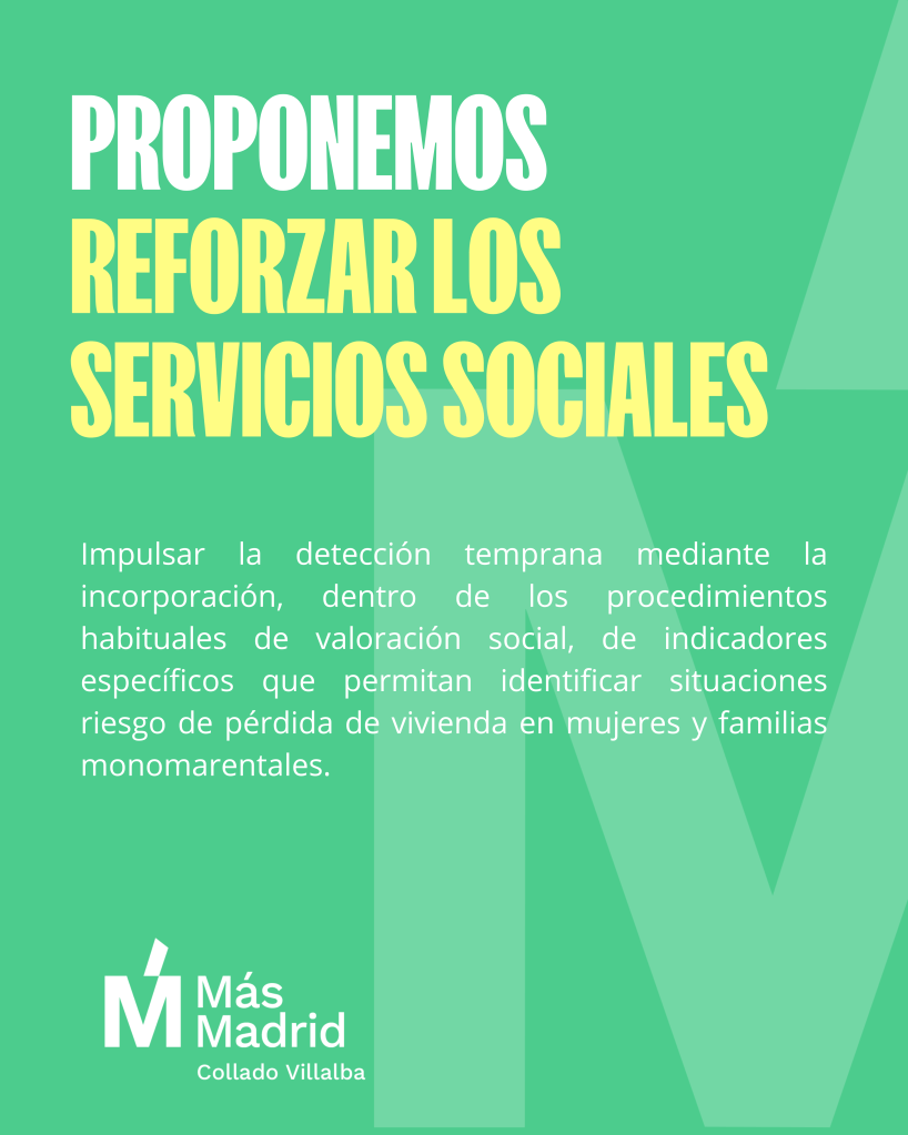 El Grupo Municipal Más Madrid presenta en el pleno ordinario de febrero una propuesta centrada en reforzar la detección y atención de situaciones de riesgo de pérdida de vivienda, especialmente en mujeres y familias monomarentales, desde los servicios sociales municipales. Esta iniciativa se enmarca en la conmemoración del 8 de marzo, Día Internacional de las Mujeres, y responde a la necesidad de visibilizar y combatir las desigualdades de género que persisten en el acceso y mantenimiento de una vivienda digna.