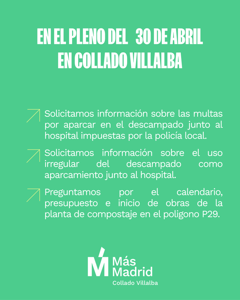 El Grupo Municipal Más Madrid en el Ayuntamiento de Collado Villalba presentará en el próximo Pleno municipal, que se celebrará el 30 de abril, una moción en defensa de la recuperación del servicio de urgencias extrahospitalarias en el municipio, una iniciativa impulsada a petición de la Plataforma por la Sanidad Pública de la Sierra de Guadarrama y respaldada por más de 1.200 firmas vecinales