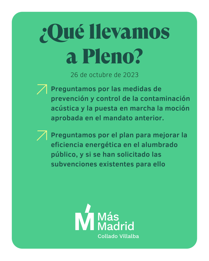 El pasado jueves 26 de octubre se celebró el pleno ordinario en el Ayuntamiento de Collado Villalba. Nuestro grupo municipal presentó varias iniciativas para su debate y preguntas al equipo de gobierno sobre su gestión.