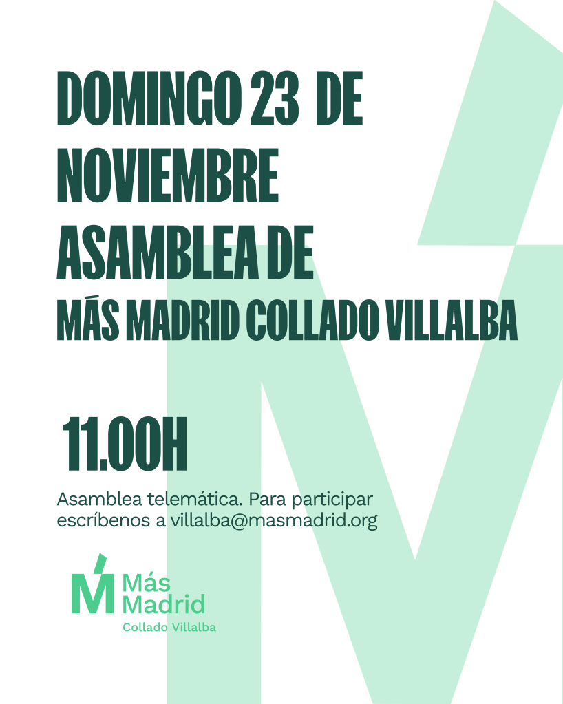 La asamblea territorial de Más Madrid Collado Villalba, celebra sus reuniones ordinarias el domingo antes del último jueves de cada mes. Si deseas participar en ellas, acércate ese mismo día o escríbenos a villalba@masmadrid.org